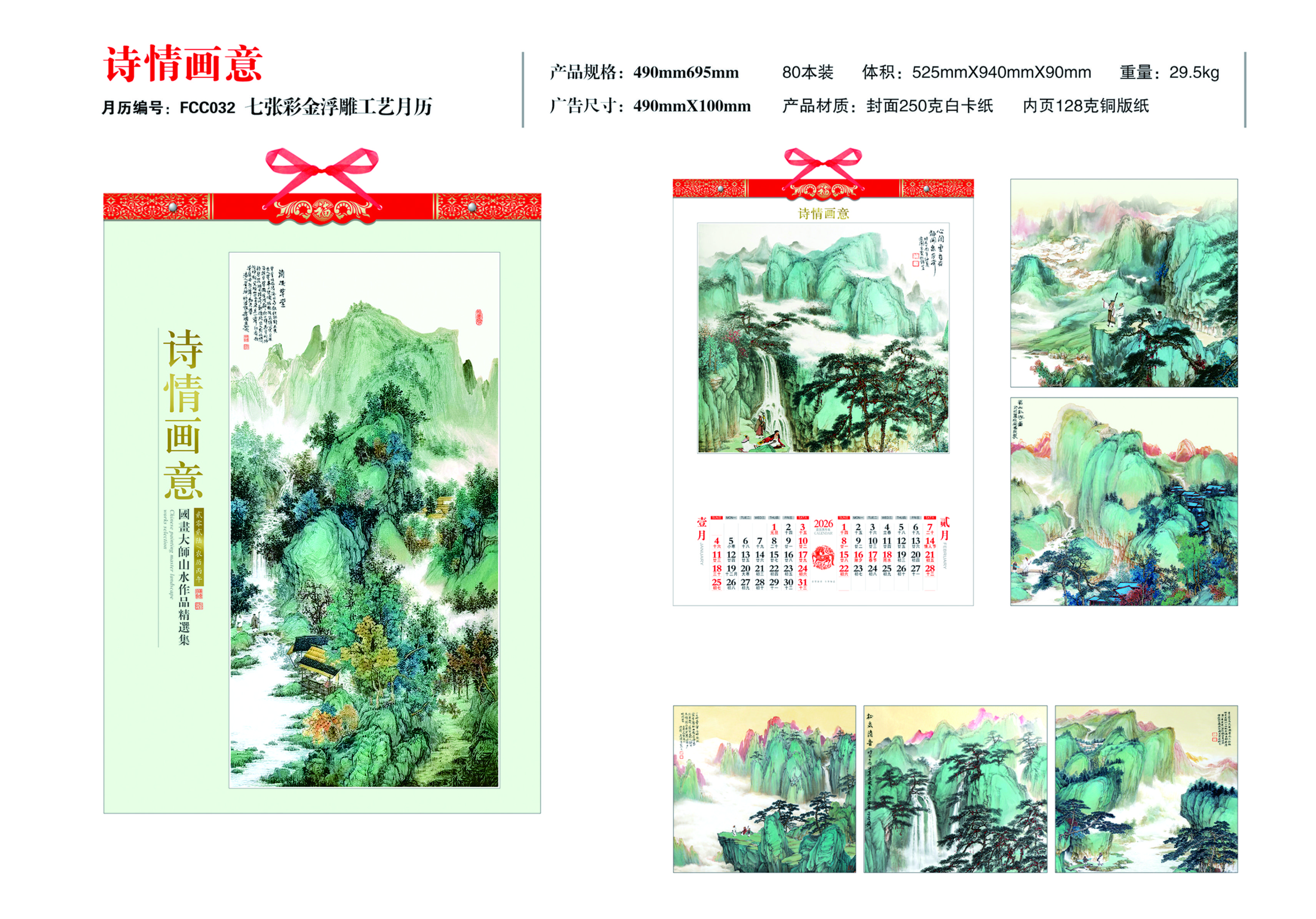 七张彩金浮雕工艺月历-诗情画意