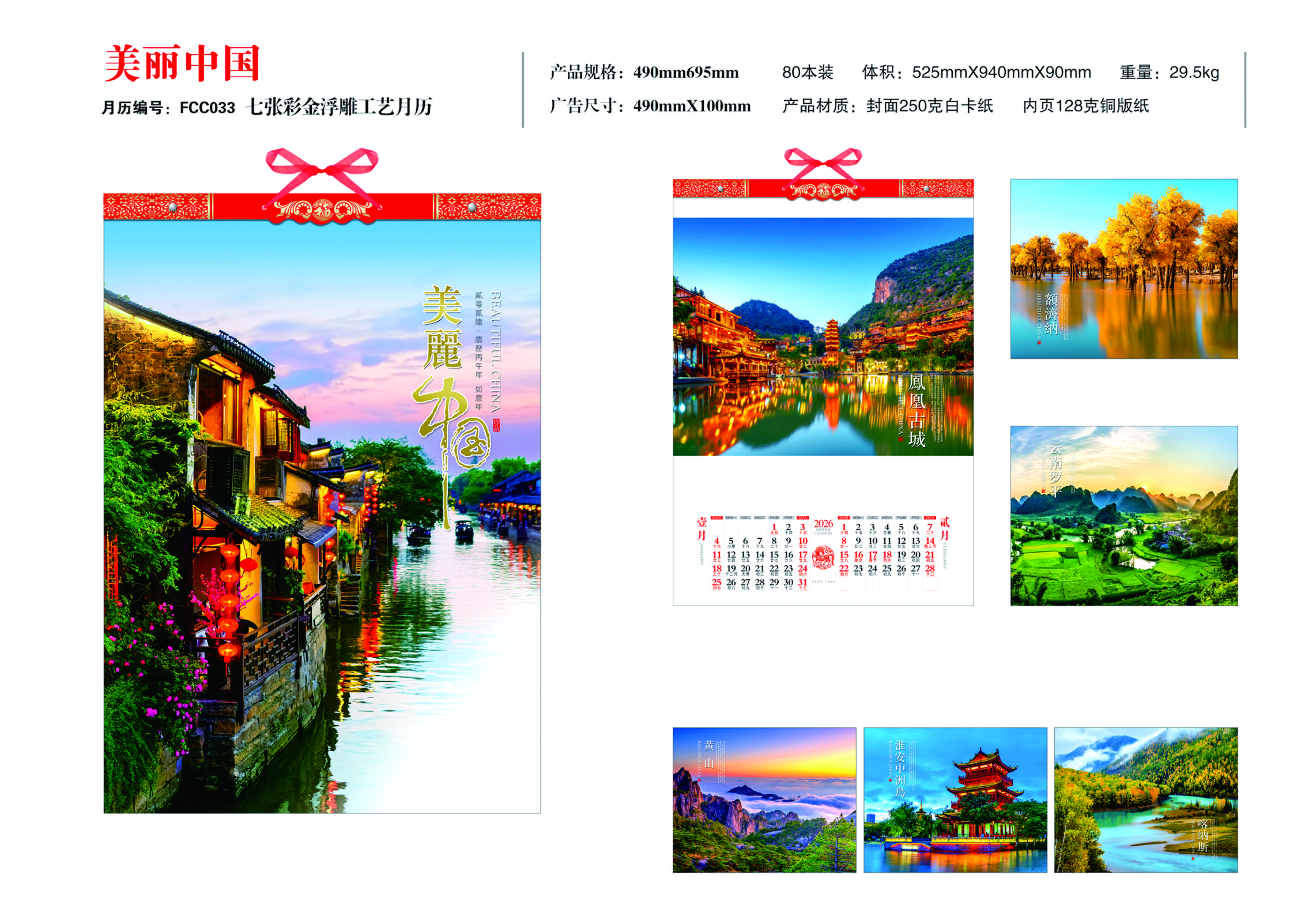 七张彩金浮雕工艺月历-美丽中国