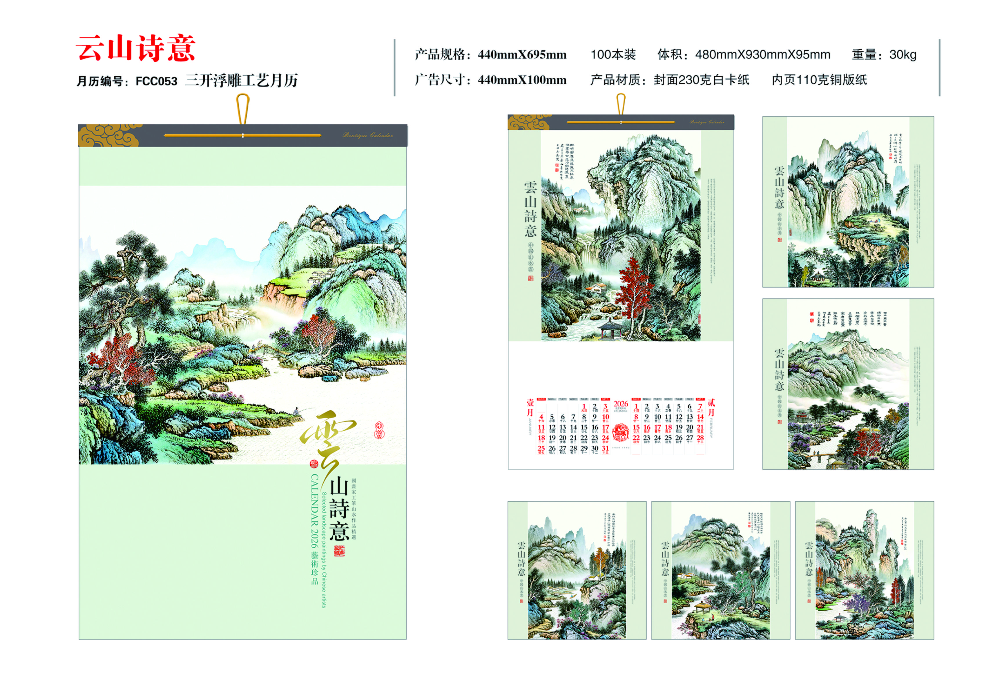 三开浮雕布纹工艺月历-云山诗意