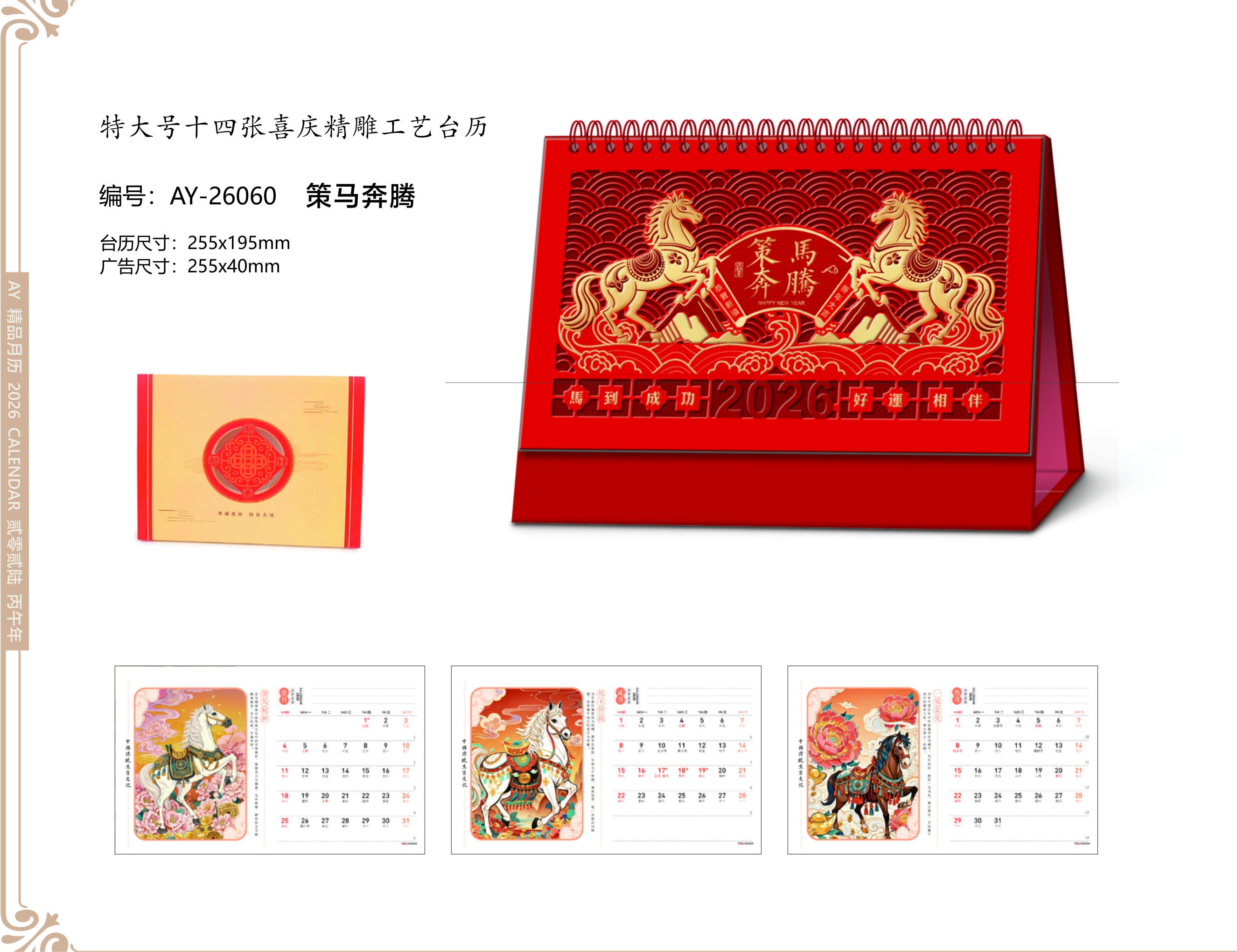 特大号十四张喜庆精雕工艺台历-策马奔腾