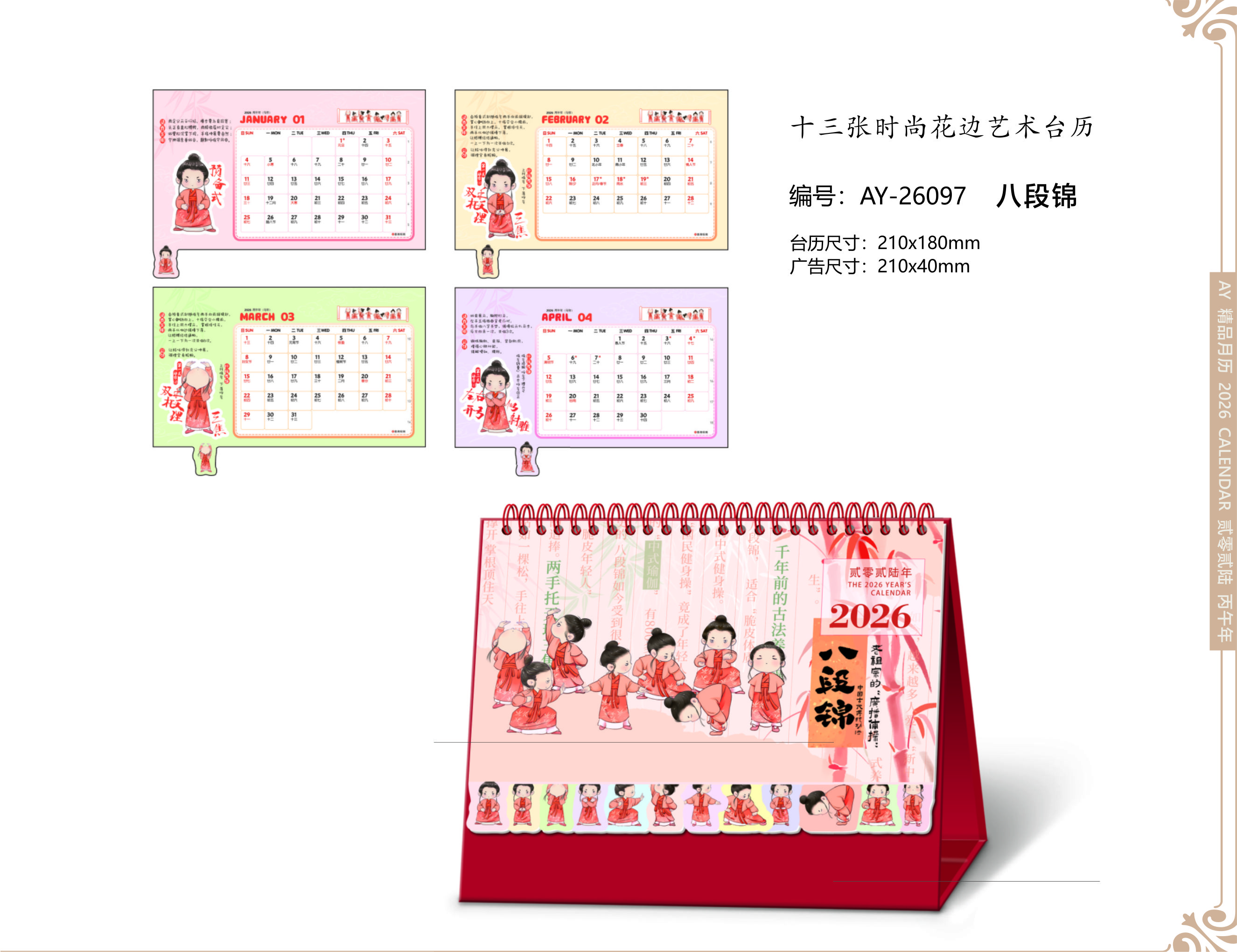 十三张时尚花边艺术台历- 八段锦