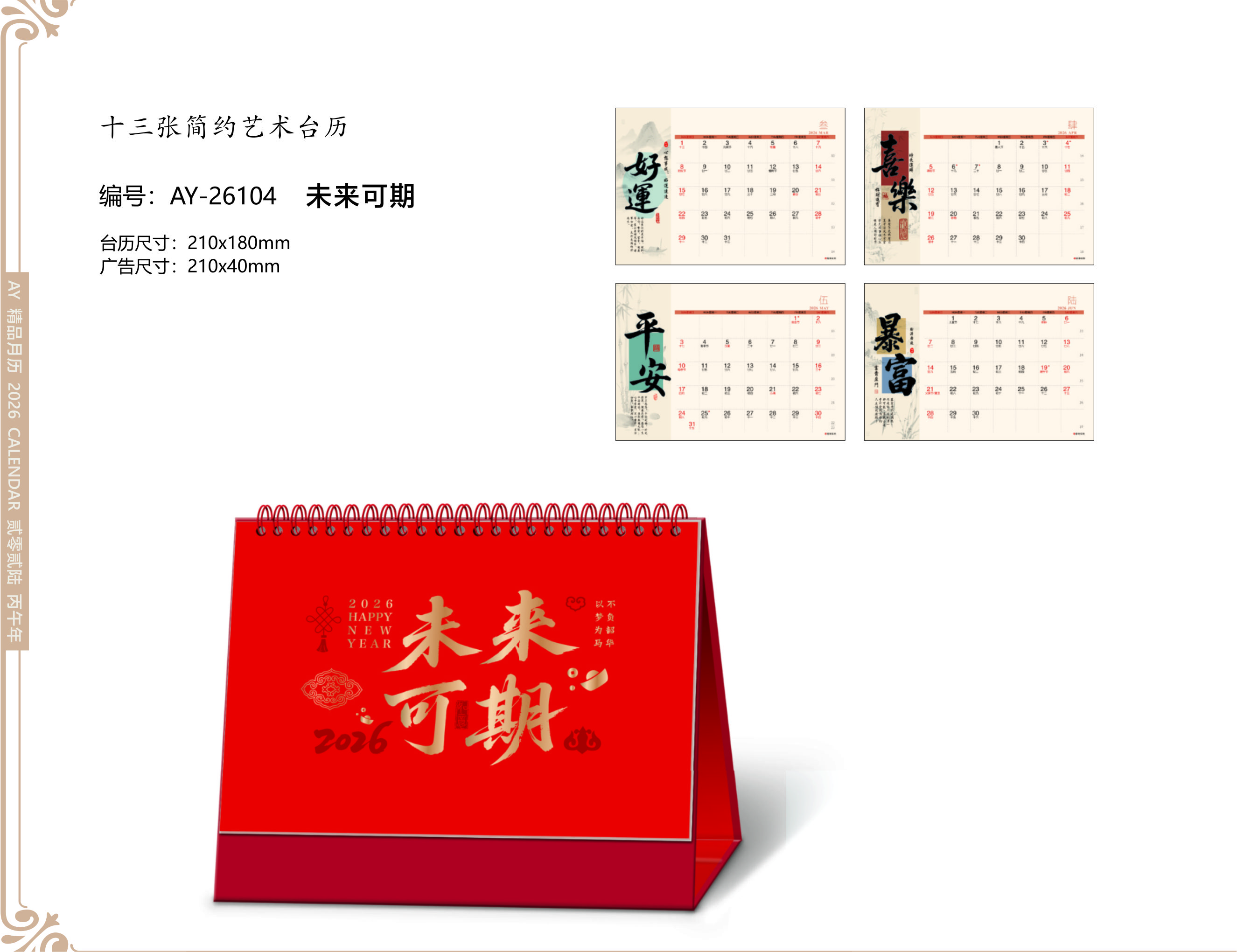 台历尺寸:210x180mm