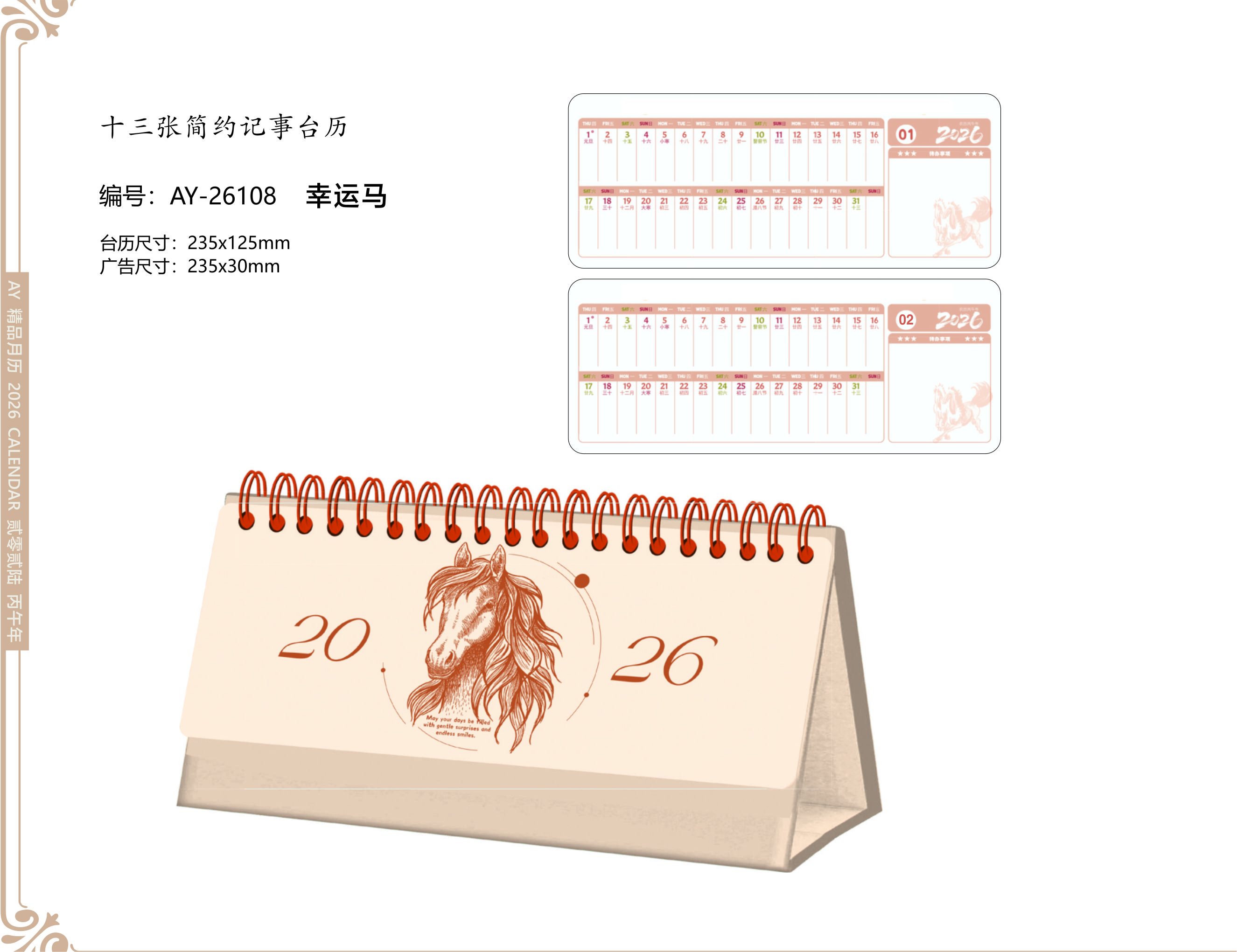 台历尺寸:235x125mm广告尺寸:235x30mm