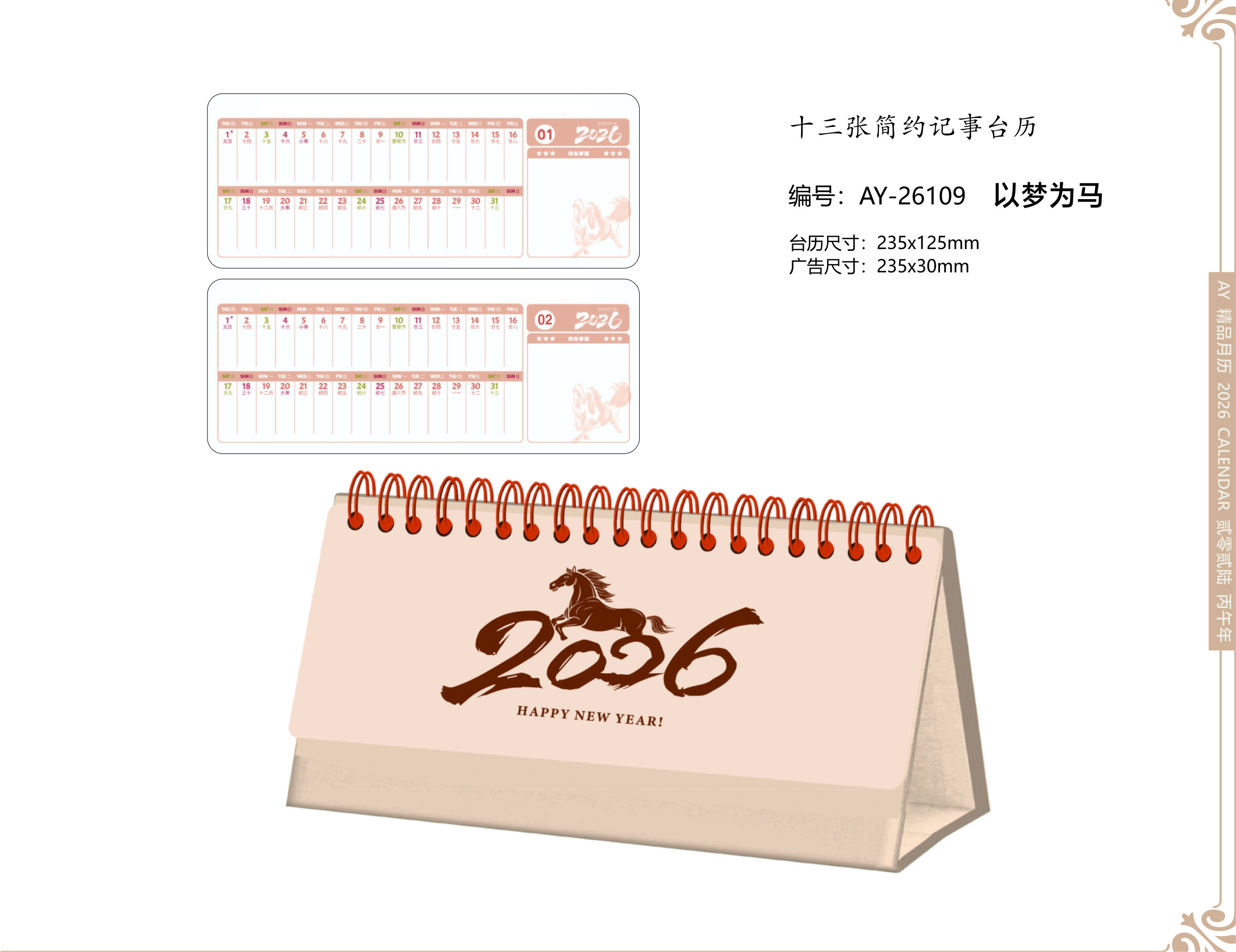台历尺寸:235x125mm广告尺寸:235x30mm