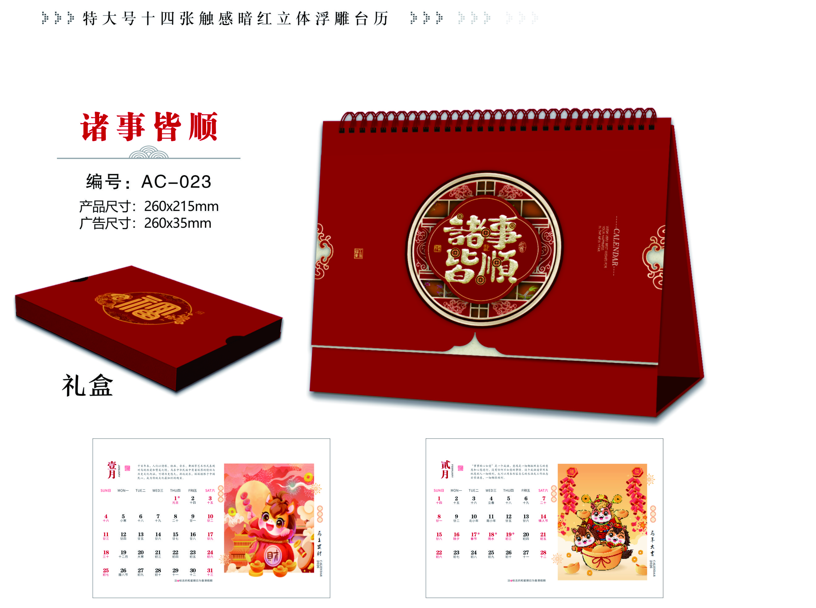 特大号十四张触感暗红立体浮雕台历-诸事皆顺