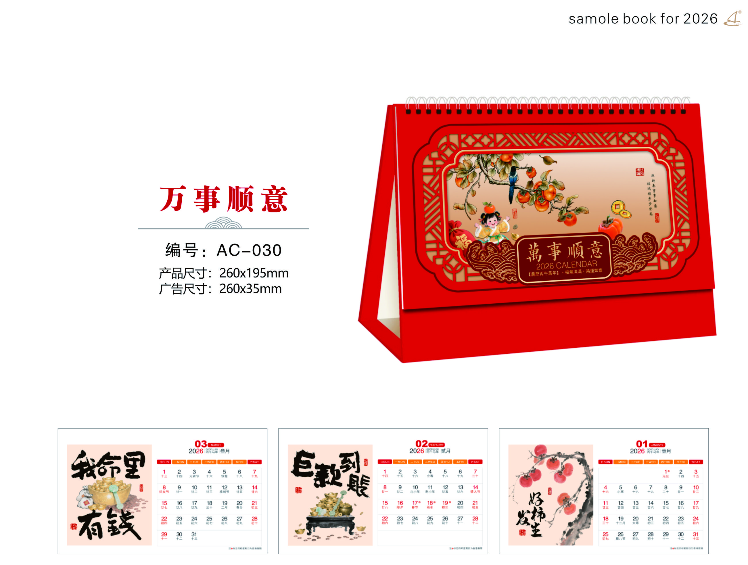 十四张触感红镂空浮雕烫双色金工艺台历-万事顺意