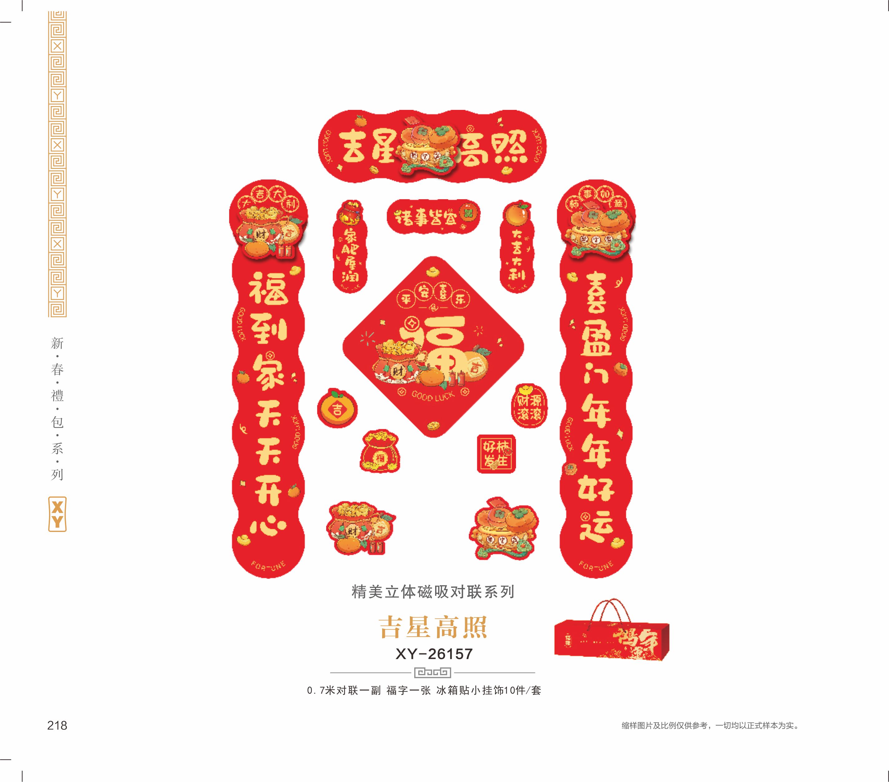 对联1副·福字1张·冰箱贴10件套·挂件1包·红包14件套·包装 1个