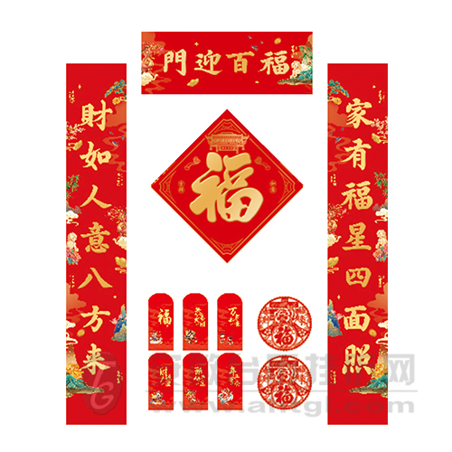 图案:门迎百福